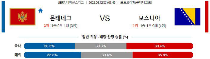 【UEFA네이션스리그】 6월 12일 몬테네그로 vs 보스니아