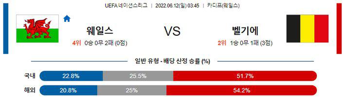 【UEFA네이션스리그】 6월 12일 웨일스 vs 벨기에