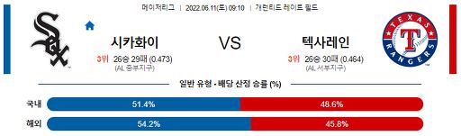 6월 11일 09:10MLB C.화이트삭스 : 텍사스
