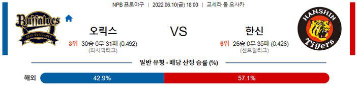 열람중 【NPB】 6월 10일 오릭스 vs 한신 2022.06.10 387