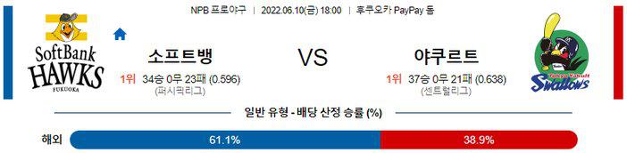 【NPB】 6월 10일 소프트뱅크 vs 야쿠르트