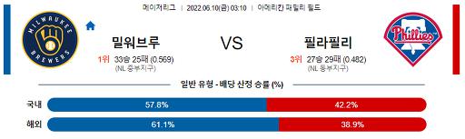 [MLB] 6월 10일 밀워키 : 필라델피아