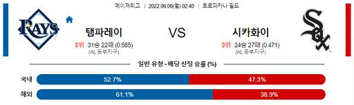 [MLB] 6월 6일 탬파베이 : 시카고 화이트삭스