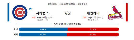【MLB】 6월05일 시카고컵스 vs 세인트루이스