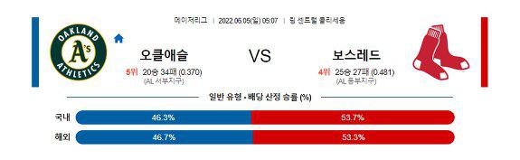 【MLB】 6월05일 오클랜드 vs 보스턴