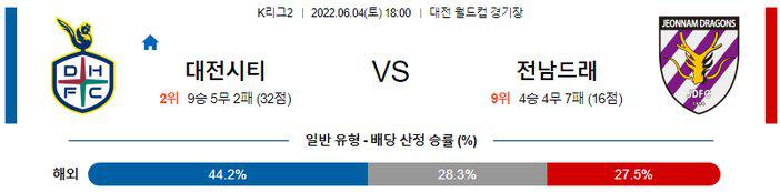 【K리그2】 6월 4일 대전 하나 시티즌 vs 전남 드래곤즈