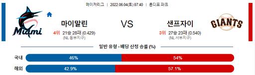 【MLB】 6월 4일 마이애미 : 샌프란시스코