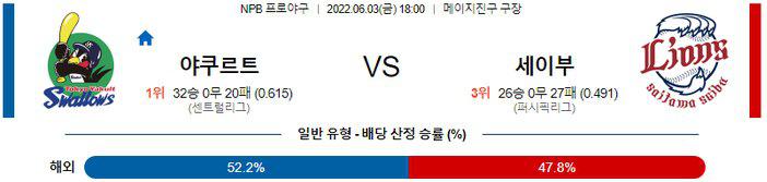 【NPB】 6월 3일 야쿠르트 vs 세이부
