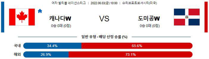 미국은 도미니카 공화국이 넘기 힘든 벽 이였지만 캐나다는 비교적 만만한 상대가 된다. 캐나다를 상대로는 도미니카 공화국의 '좋은날' 경기력이 나타날 것이다. 도미니카 공화국 승리 가능성을 추천 한다.
