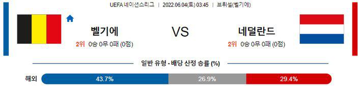 【UEFA네이션스리그】 6월4일 벨기에 vs 네덜란드