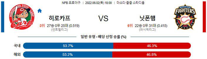 【NPB】 6월 2일 히로시마 vs 니혼햄