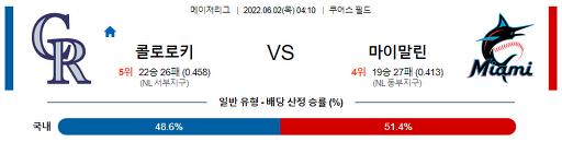[MLB] 6월 2일 콜로라도 : 마이애미