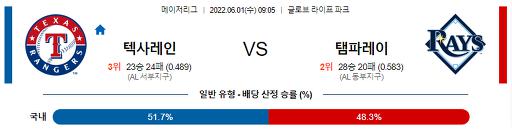 【MLB】 6월 1일 텍사스 : 탬파베이
