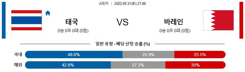 후술하겠지만, 바레인의 수비진이 꾸준한 실점을 허용하고 있으며, 태국이 3월부터 치른 4번의 친선전에서 모두 득점을 기록하고 있기 때문에 이번 일정도 다득점 페이스가 예상된다. 스포츠중계 오버(2.5 기준)의 가능성이 높겠다. 또한 최근에 베트남과 태국을 비롯한 동남아시아팀들의 높아진 수준이 눈에 띈다. 여전히 동, 서 아시아의 강팀들에게는 고전하는 모습이나, 그 아래 전력들에게는 대등한 경기를 펼칠 수준. 직전 맞대결에서도 태국이 3-1로 승리를 거둔 바 있기 때문에 이번 일정도 태국의 승리를 예상한다.