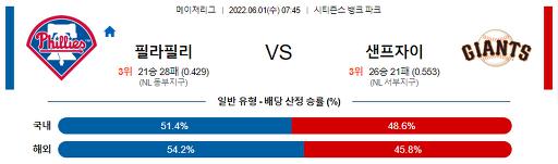 【MLB】 6월 1일 필라델피아 : 샌프란시스코