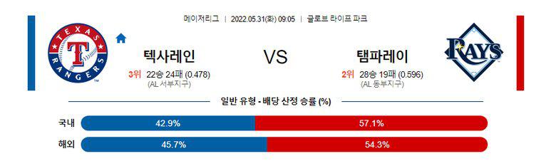 【MLB】 5월31일 텍사스 vs 탬파베이