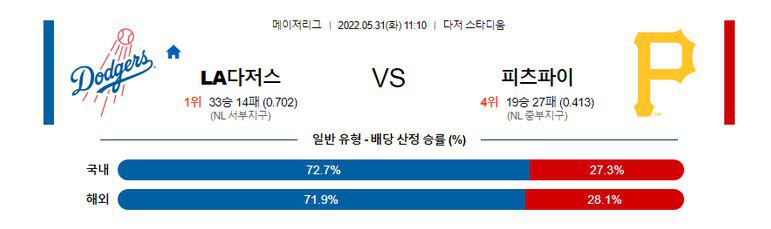 열람중 【MLB】 5월31일 LA다저스 vs 피츠버그 2022.05.31 490