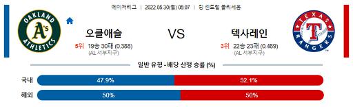 【MLB】 5월 30일 오클랜드 : 텍사스