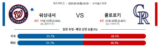 【MLB】 5월 30일 워싱턴 : 콜로라도