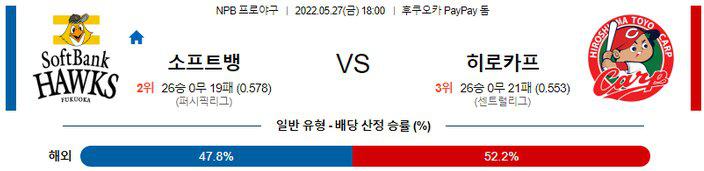4272 【NPB】 5월 28일 소프트뱅크 vs 히로시마 2022.05.28 462