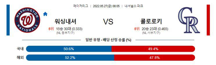 【MLB】 5월27일 워싱턴 vs 콜로라도