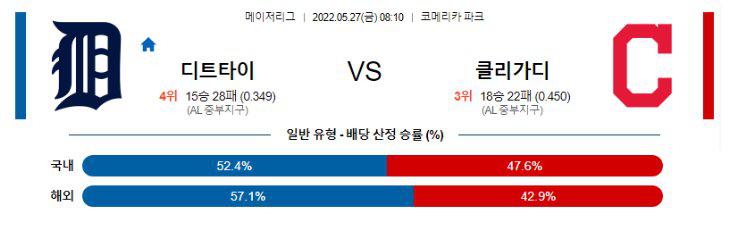 【MLB】 5월27일 디트로이트 vs 클리블랜드