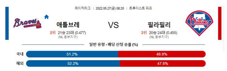 열람중 【MLB】 5월27일 애틀란타 vs 필라델피아 2022.05.26 508