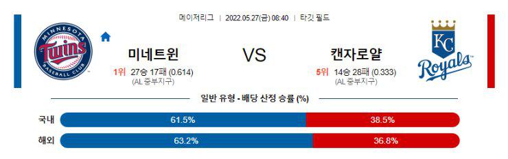 열람중 【MLB】 5월27일 미네소타 vs 캔자스시티 2022.05.26 480