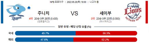 열람중 【NPB】 5월 26일 주니치 : 세이부 2022.05.26 537