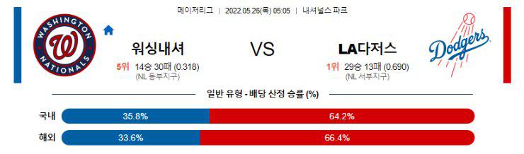 【MLB】 5월26일 워싱턴 vs LA다저스