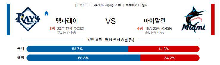 【MLB】 5월26일 탬파베이 vs 마이애미