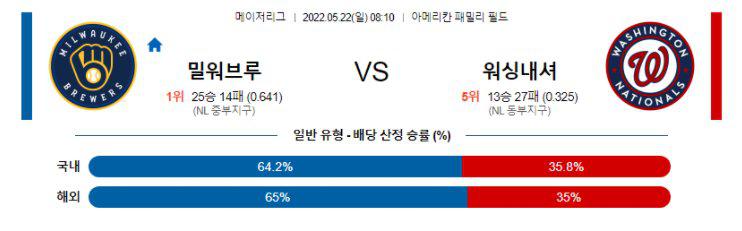 【MLB】 5월22일 밀워키 vs 워싱턴