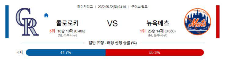 【MLB】 5월22일 콜로라도 vs 뉴욕메츠