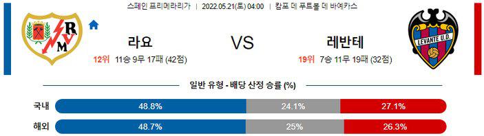 【Laliga】 5월 21일 라요 바예카노 vs 레반테
