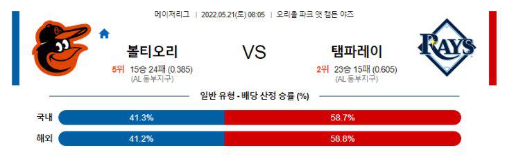 【MLB】 5월21일 볼티모어 vs 탬파베이