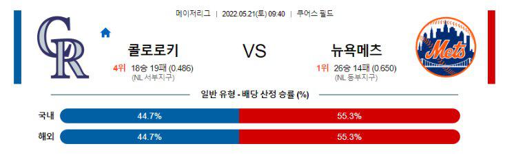 【MLB】 5월21일 콜로라도 vs 뉴욕메츠