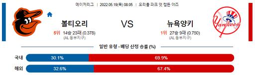 5월 19일 08:05 MLB 볼티모어 : 뉴욕 양키스