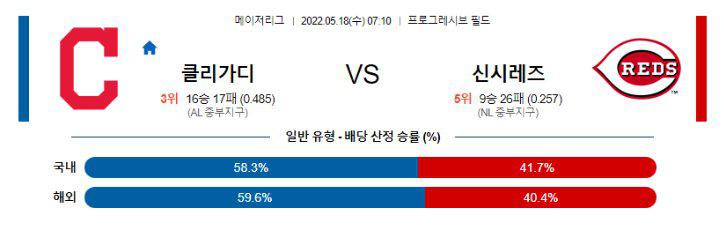 【MLB】 5월18일 클리블랜드 vs 신시내티