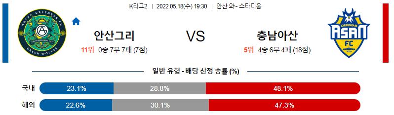 【K리그2】 5월18일 안산 그리너스 FC vs 충남 아산 FC