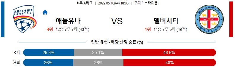 【A리그】 5월18일 애들레이드 유나이티드 FC vs 멜버른 시티 FC