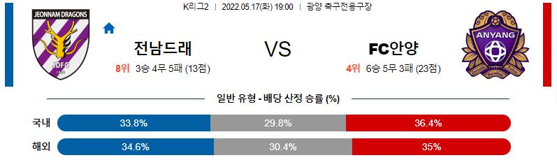 【K리그2】 5월 17일 전남 드래곤즈 vs FC 안양