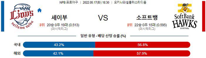 【NPB】 5월 17일 세이부 vs 소프트뱅크