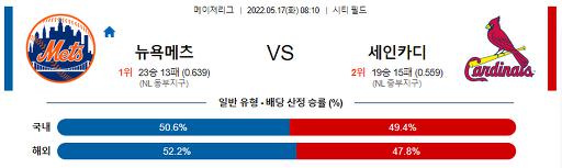 5월 17일 08:10 MLB 뉴욕 메츠 : 세인트루이스