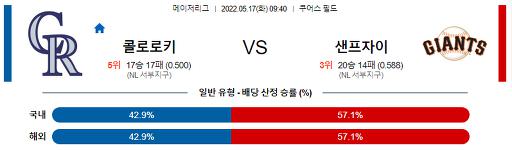 5월 17일 09:40 MLB 콜로라도 : 샌프란시스코