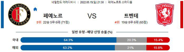 【Eredevisie】 5월 15일 페예노르트 로테르담 vs 트벤테