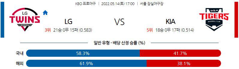 선발 싸움에서 올시즌 상대 타선을 잼재웠던 플럿코 투수에 대한 기대치가 높은 경기다. 또한, 기아는 전일 예상하지 못한 양현종 투수의 헤드샷 퇴장으로 불펜이 일찍 가동되었고 션 놀린 투수의 피안타 허용률이 직전경기에서 높았다는 것이 찜찜한 타이밍. LG 승리 가능성을 추천 한다.