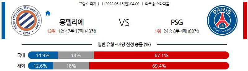 【리그앙】 5월 15일 몽펠리에 vs 파리 생제르맹