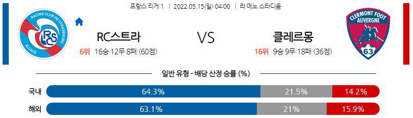 【리그앙】 5월 15일 스트라스부르 vs 클레르몽 푸트