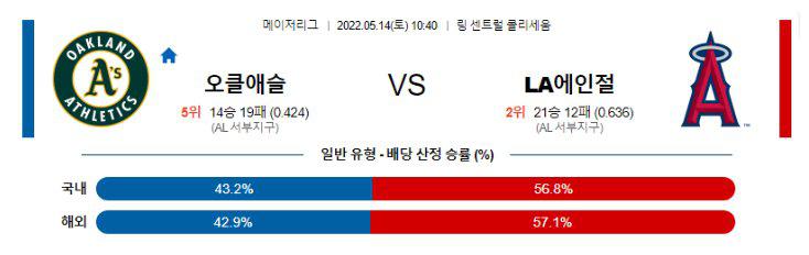 【MLB】 5월14일 오클랜드 vs LA에인절스