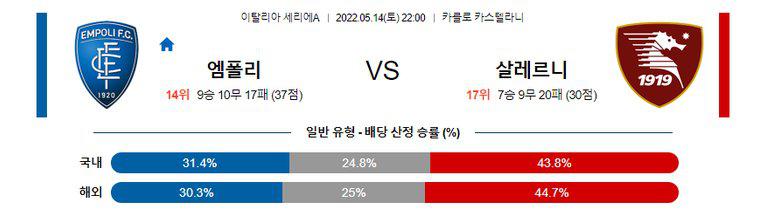 【세리에A】 5월 14일 엠폴리 vs 살레르니타나